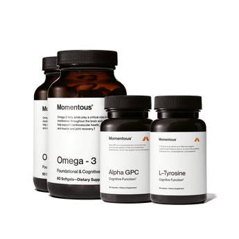 The Focus & Cognition Stack combines Tyrosine, Omega-3, and Alpha GPC to support mental clarity, attention, and long-term brain health. Ideal for high performers, students, or athletes, this stack is designed to enhance focus, reduce cognitive fatigue, and improve processing speed.