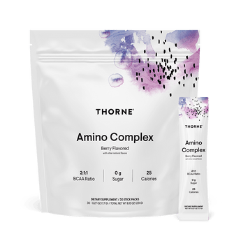 Thorne’s Amino Complex is a comprehensive blend of EAAs, which is high in branched-chain amino acids (BCAAs) – a group of amino acids that promote the growth of lean muscle mass and enhance muscle strength.*