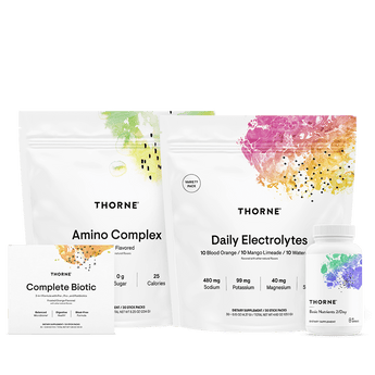 Thorne’s GLP-1 Support Stack includes a 30-day supply of four carefully selected nutritional supplements to support individuals engaged in weight-loss programs – those taking GLP-1s in particular.
