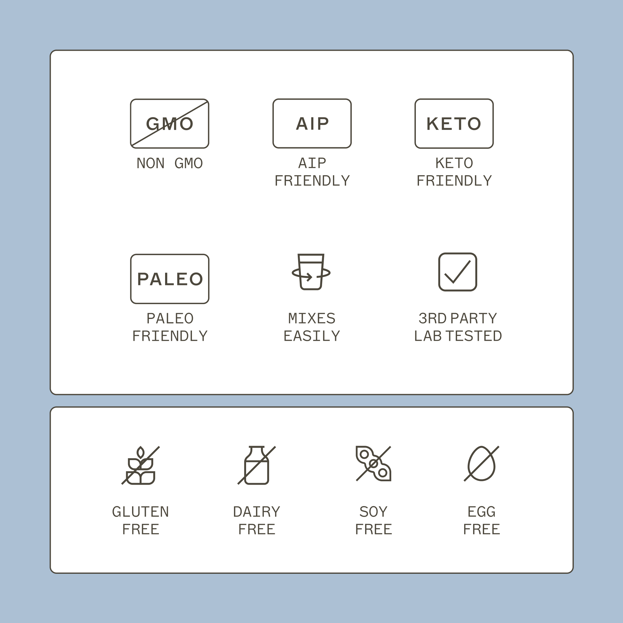 DOES NOT CONTAIN: Gluten, Wheat, Dairy, Soy, GMOs, or Yeast