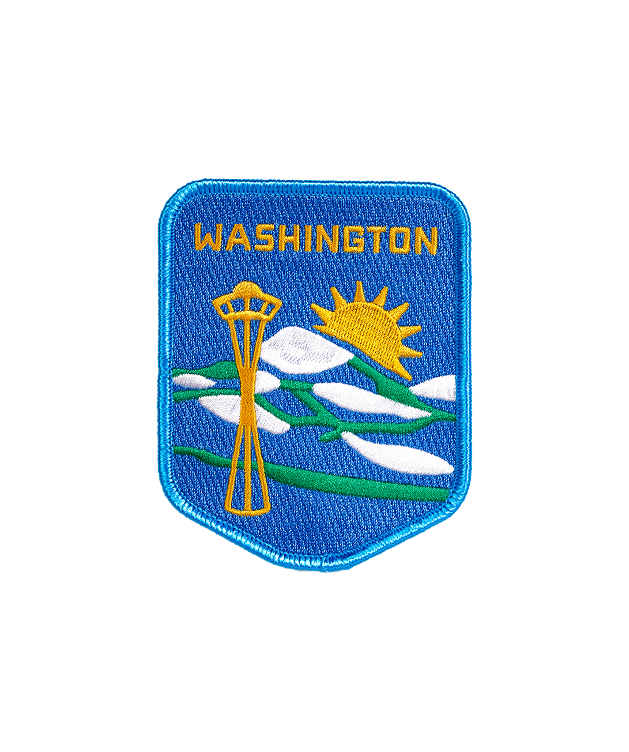 Show off your west coast Washingtonian pride with this blue embroidered patch. Inspired by the vintage patches we have sourced over the years this patch features some of the state's most famous views, including Seattle's Space Needle and Mount Rainier.